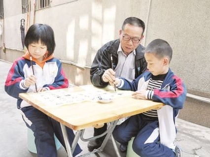 “我跟您儿们送的这幅对联是:孝老爱亲善邻里,定规立训振家兴。为什么跟您儿们对联呢?您儿们这个家族,祖祖辈辈的家教家规,很严格,对子女的教育很到位。子女也很争气,孝敬老人,发奋努力,邻里关系都很和睦。”