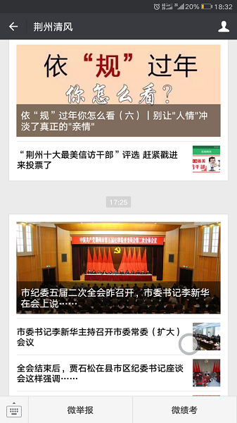 据悉,荆州市纪委监察局于春节前正式开通官方微信公众号——“荆州清风”,作为该市纪委监察局继改版升级官方网站——荆州廉政网之后,强力打造的又一全新信息发布平台,旨在适应新媒体发展趋势,加强媒体融合,拓宽宣传渠道,全面展现荆州全面从严治党新成效,及时传递新一年正风反腐好声音。