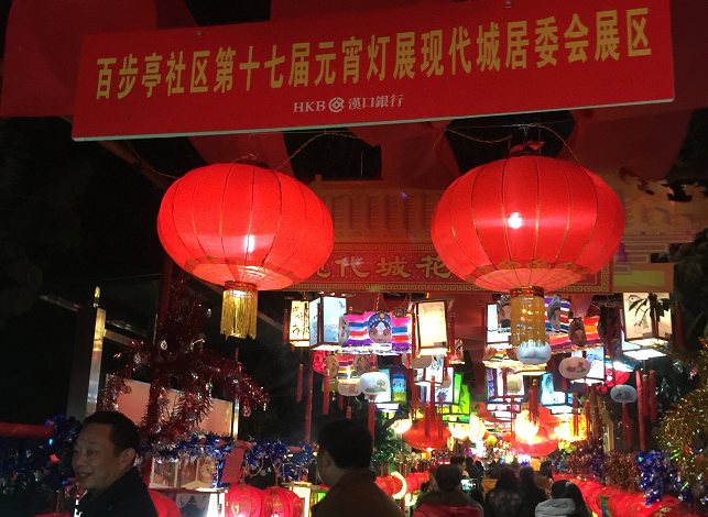 元宵灯展、万家宴、全国社区网络春晚已成为根植百步亭,幅射全武汉的年俗文化,特别是元宵灯展已有17个年头,不仅吸引了大量的社区居民,武汉三镇的大批市民也慕名前来观赏。百步亭社区居民发挥聪明才智,将家风家训、传统文化、社会主义核心价值观融入到元宵灯展中,让居民在观赏中受到教育、得到提升。
