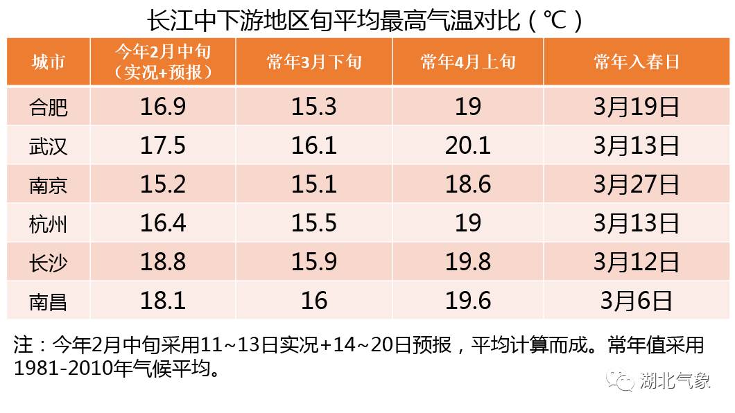 自元宵节开始至今,我们省气温像是坐上了高铁,从冬天一路疾驰抵达了春天的门槛上。虽然对我省来说,春姑娘往往要到3月中下旬才会真正到来,但在今年2月中旬我国中东部气温偏暖的大背景下,武汉气温将会高于常年的3月下旬!