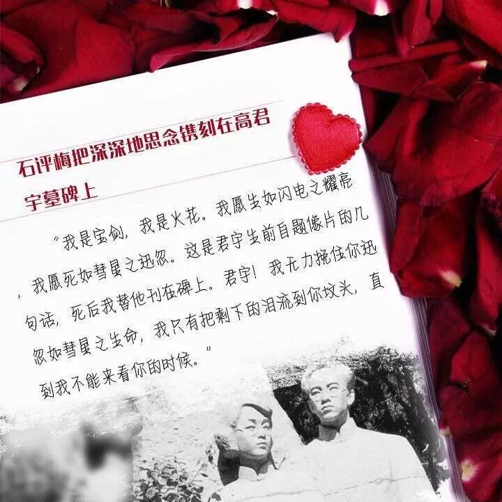 我是宝剑,我是火花:“我愿生如闪电之耀亮,我愿死如彗星之迅忽。这是君宇生前自题像片的几句话,死后我替他刊在碑上。君宇!我无力挽住你迅忽如彗星之生命,我只有把剩下的泪流到你坟头,直到我不能来看你的时候。”