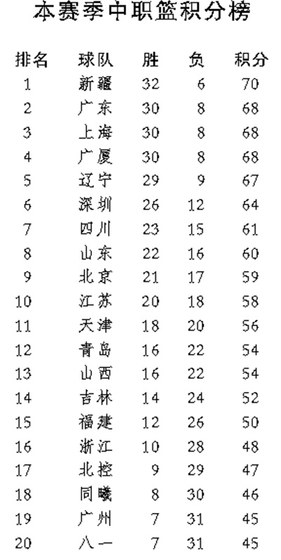 2月19日,2016—2017赛季中国男篮职业联赛(CBA)进行了常规赛最后一轮的比赛,在两场事关季后赛门票的“生死战”中,北京队以113∶114负于四川队,而山东队以112∶111击败青岛队,这样山东队22胜16负,以领先北京队1个胜场的优势搭上季后赛“末班车”,北京队无缘季后赛。