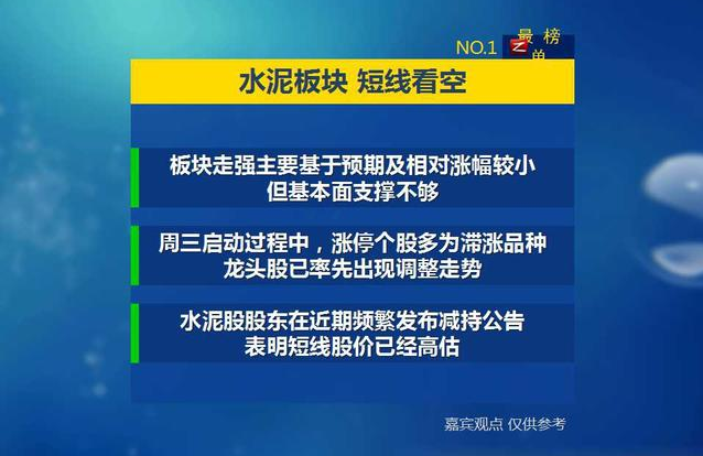 但在昨日的栏目中我们提出看淡水泥板块的短期走势,主要的原因在于板块的走强主要基于预期及相对涨幅较小,基本面的支撑不够。其次水泥板块周三的启动中涨停的多为滞涨品种,龙头股已率先出现调整走势。