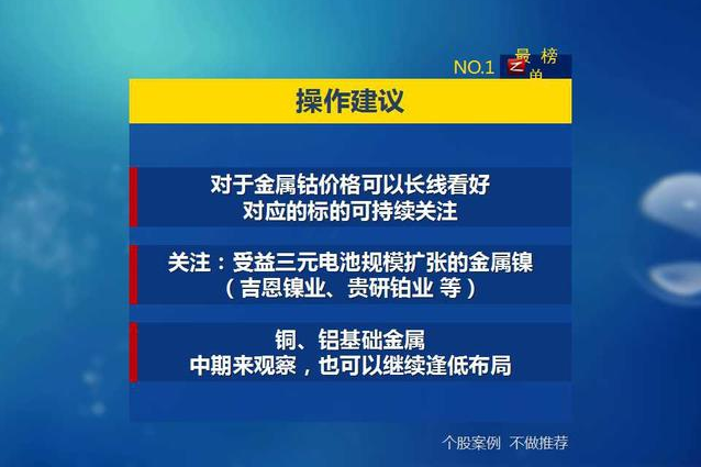因此对于金属钴价格可以长线看好,对应的标的也可以持续关注。同时按照此逻辑还可以关注受益于三元电池规模扩张的金属镍,相关的标的可以关注吉思镍业、贵研铂业等。同时我们再次强调由于全球基金的回暖,以及国内基础建设和环保趋严等影响,铜、铝基础金属中期来看也可以继续逢低布局。