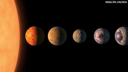 一个包含NASA在内的国际合作团队在距离地球40光年的恒星周围发现7个与地球大小相当的行星,其中3个位于宜居带内。或许在十年内,我们就能探明它们表面存不存在生命。