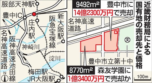 在政治生态逐步右倾化的日本,森友学园和筹建中的“安倍小学”本没有成为舆论聚焦点,但最近曝出的低价拿地风波却让它受到了媒体的集中“照顾”。去年6月,森友学园与日本国土交通省、近畿财务局签署一份土地买卖合同,以1.34亿日元(1人民币约合17日元)购得大阪府丰中市野田町一块面积8770平方米的国有土地,用来建造“安倍小学”。然而,与其仅一街之隔的另一块同等规模的国有土地(9492平方米)售价却高达14.23亿日元,是前者的10多倍。自此,森友学园和“安倍小学”彻底“火”了。