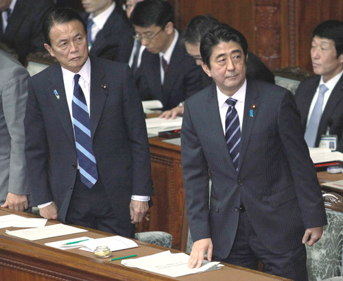 安倍晋三与麻生太郎(图左)。图片来自彭博社