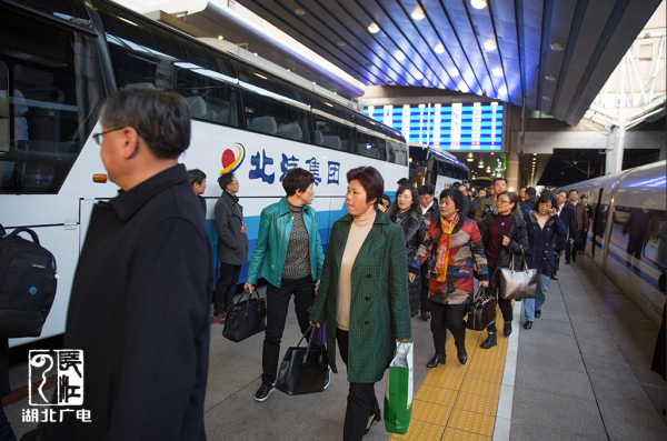 长江云报道 3月2日,出席十二届全国人大五次会议的107名住鄂全国人大代表乘坐G516次高铁抵达北京。