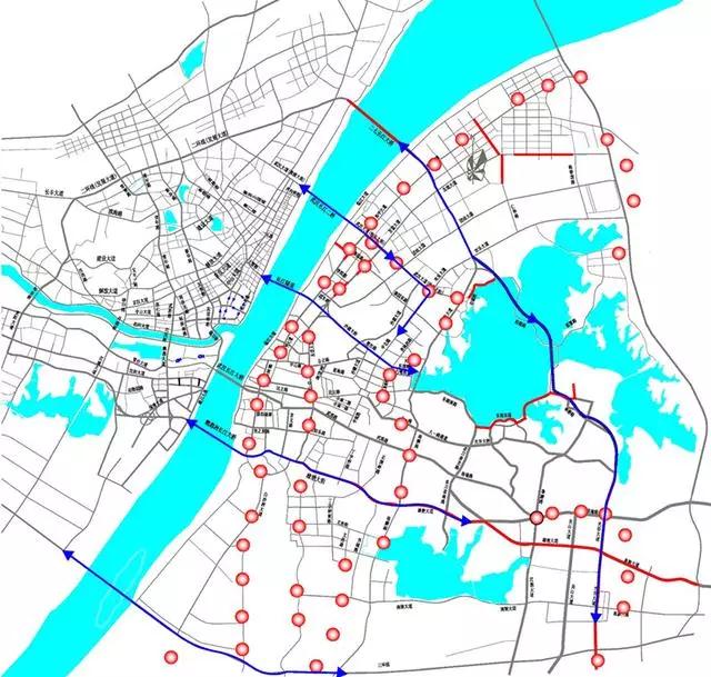 ①汉口往来江南核心区域尽量通过二七长江大桥、长江隧道通行;