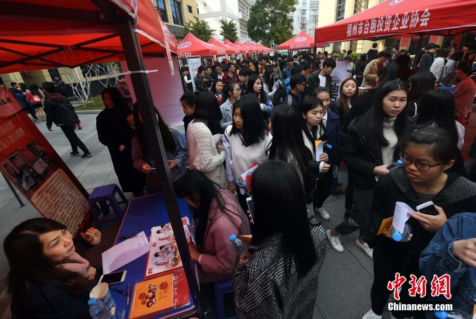 3月4日,求职者在招聘会现场了解招聘信息。当日,由福州台湾创业创新创客基地委员会主办,福州市台胞投资企业协会协办的“首届福州台湾创业创新创客基地大专院校人才招聘会”在福州马尾举行,47家入驻基地的台资或陆台合资企业,抛出了包括产品美编、动画设计、电子商务、产品营销、食品调制、机械设计、产品临床医学在内的22类岗位,吸引了众多即将毕业的大学生前来应聘。 张斌 摄