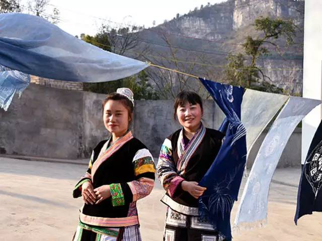 “现在她们每个月在家就能赚3000多块钱啦!”蔡群笑着对记者说。今年36岁的她,在老家开了一家苗族蜡染刺绣工艺品公司。