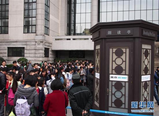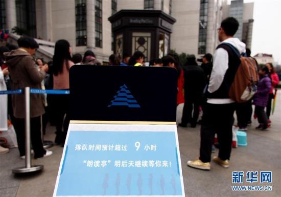 当日,上海图书馆知识广场东侧的朗读亭前排起了长队,高峰排队时长超过9个小时。