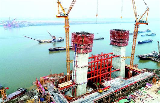新月湖桥目前正在紧张施工,今年6月有望实现主塔封顶