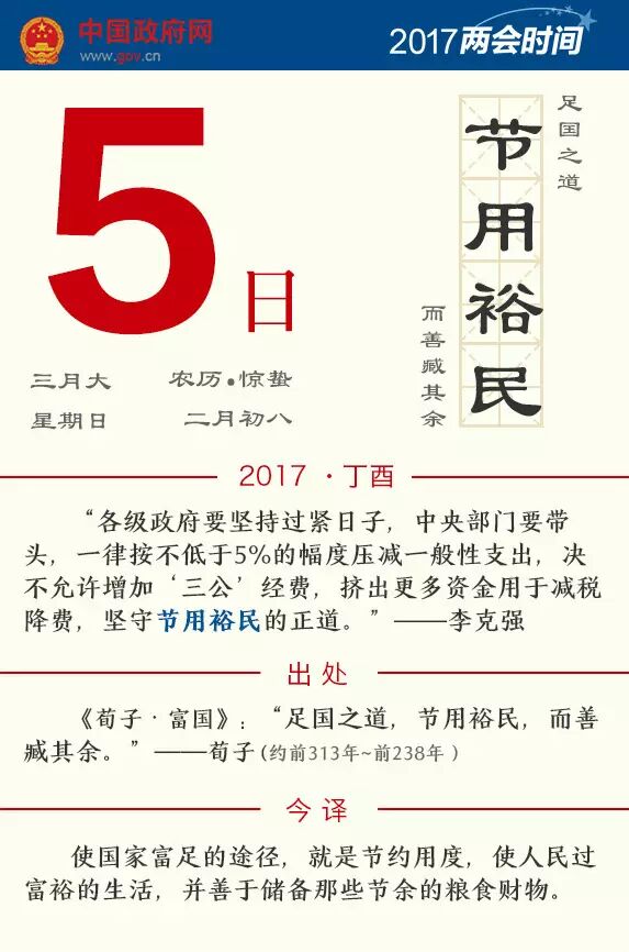 — 各级政府要坚持过紧日子,中央部门要带头,一律按不低于5%的幅度压减一般性支出。