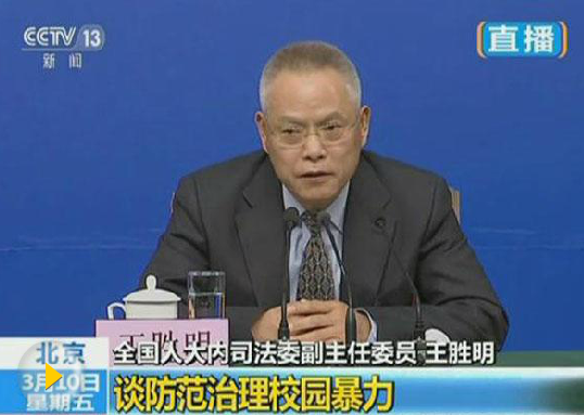 全国人大内务司法委员会副主任委员王胜明10日表示,全国人大常委会在对未成年人保护法已经开展了执法检查的基础上,今年将开展专题调研。调研的重点之一,就是校园暴力。