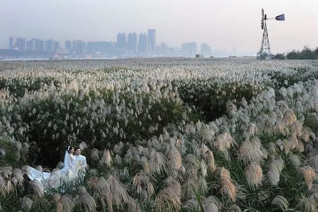 汉口江滩三阳路至二七长江大桥上的野生芦苇带
