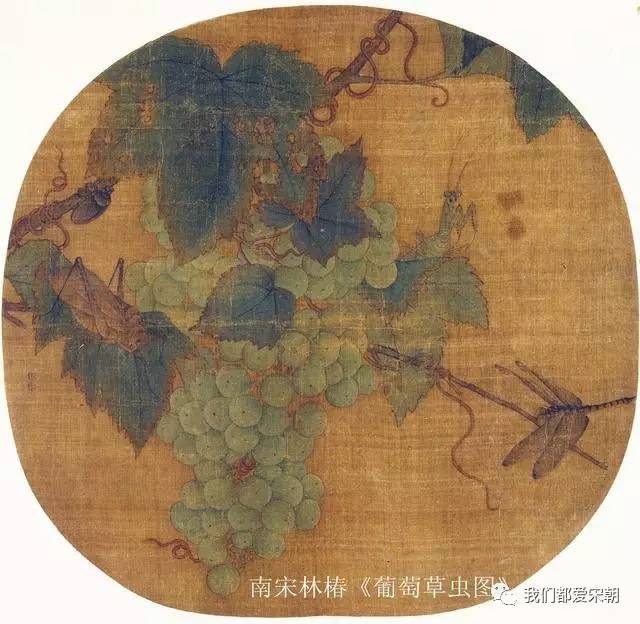 南宋林椿的《葡萄草虫图》(北京故宫博物院藏)则画到了葡萄。宋人不但将葡萄当食用的时鲜水果,还用来酿酒。苏颂《本草图经》说:“葡萄,生陇西五原,敦煌山谷。今河东及近汴州郡皆有之。苗作藤蔓而极长,太盛者一二本绵被山谷间。花极细而黄白色,其实有紫白二色,有圆如珠者,有长似马乳者,有无核者。皆七月八月熟,取汁可酿酒。”嘿嘿,不要以为只有生活在现代社会的你才饮得到葡萄酒。