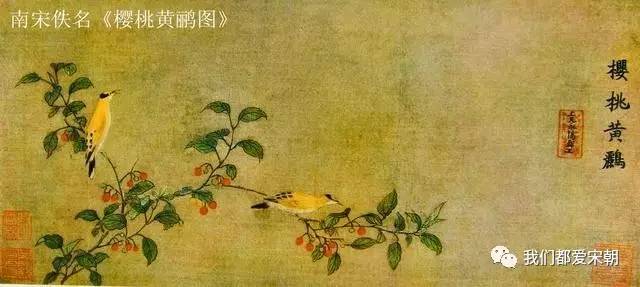 还有一段宋词名句,相信你会背诵:“流光容易把人抛,红了樱桃,绿了芭蕉。” 可见樱桃也是宋人熟悉的水果,唐宋诗人还用“樱桃樊素口,杨柳小蛮腰” 来形容女子的风姿。我们从南宋佚名的《樱桃黄鹂图》(上海博物馆藏)也可以找到樱桃这种水果。