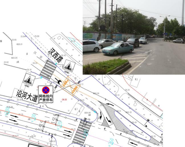 沿河大道汉西路路口是公交分流的主要通道,现状汉西路道路最窄处宽度8.5米,大型车辆双向错车可能较为困难。在道路最窄处将施划黄色网格线,即使是等候红灯时,车辆也不能停放于网格线内,以确保大型车辆在此处会车条件;同步该处将增设视频监控设备1套,抓拍违法行为。