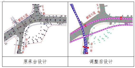 宝硚工程为给地铁10号线、14号线预留空间,调整了宝硚工程硚口路部分桥墩、承台规格,最大处(葛洲坝大厦门前)结构宽度达到37.9米,打围后硚口路剩余宽度3.1米,需封闭硚口路(解放大道至京汉大道段)方能施工。
