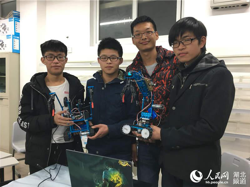 通过手机或者电脑操控,机器人可以捶背、捏肩。3月28日,武昌理工学院信息工程学院4名大学生在该校创客机器人展示活动中,展出了这台原创“按摩机器人”,吸引了众多师生的驻足观看。