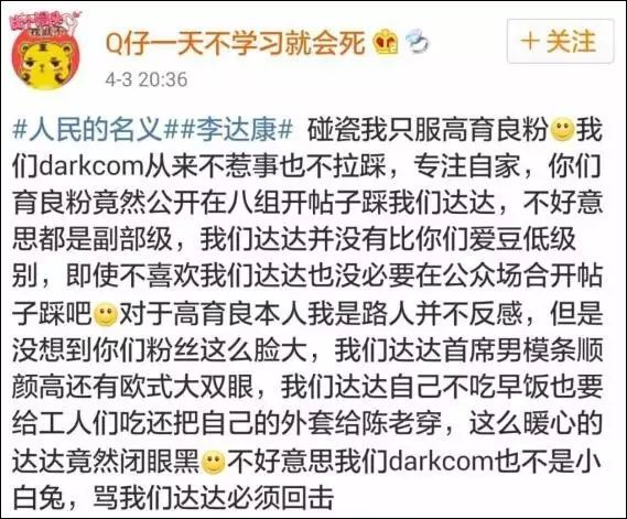 再看看达康粉和育良粉模仿饭圈“撕X”,也是real服气。