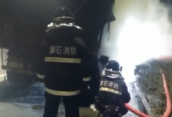 消防部门赶赴现场时,只见一辆大货车两边轮胎冒着火苗并散发出大量浓烟,消防部门便迅速联合高管部门对事故现场进行警戒,同时使用高压水枪扑灭外面明火,经过约20分钟的奋战,余火被清除。