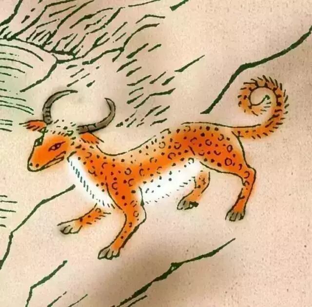 类形状像野猫却长着向下垂到眉毛的长头发,它雌雄同体,自己受孕,自己繁殖。吃了它的肉就会使人不产生妒忌心。