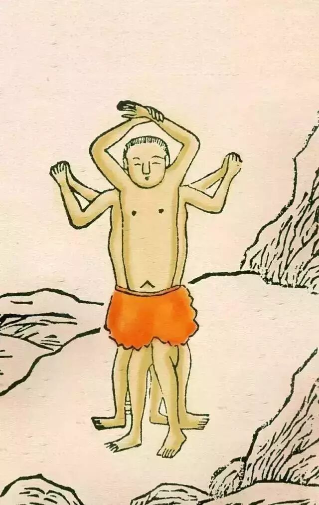 三身国在夏后启所在之地的北边,该国的人都长着一个脑袋,却有三个身子。