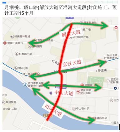 月湖桥封闭施工后,汉阳、硚口之间的汉江通道由5座桥24条车道,下降至4座桥20条车道,全天通行能力由45万辆以上车辆下降到38万辆左右。