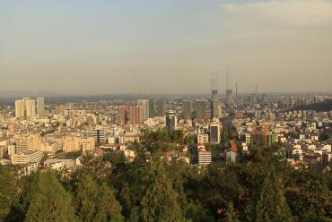资料图:石家庄市区笼罩在雾霾中。