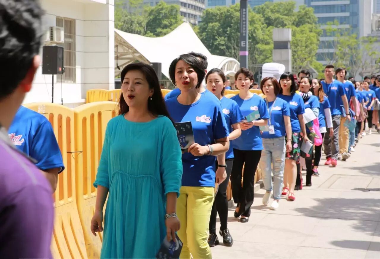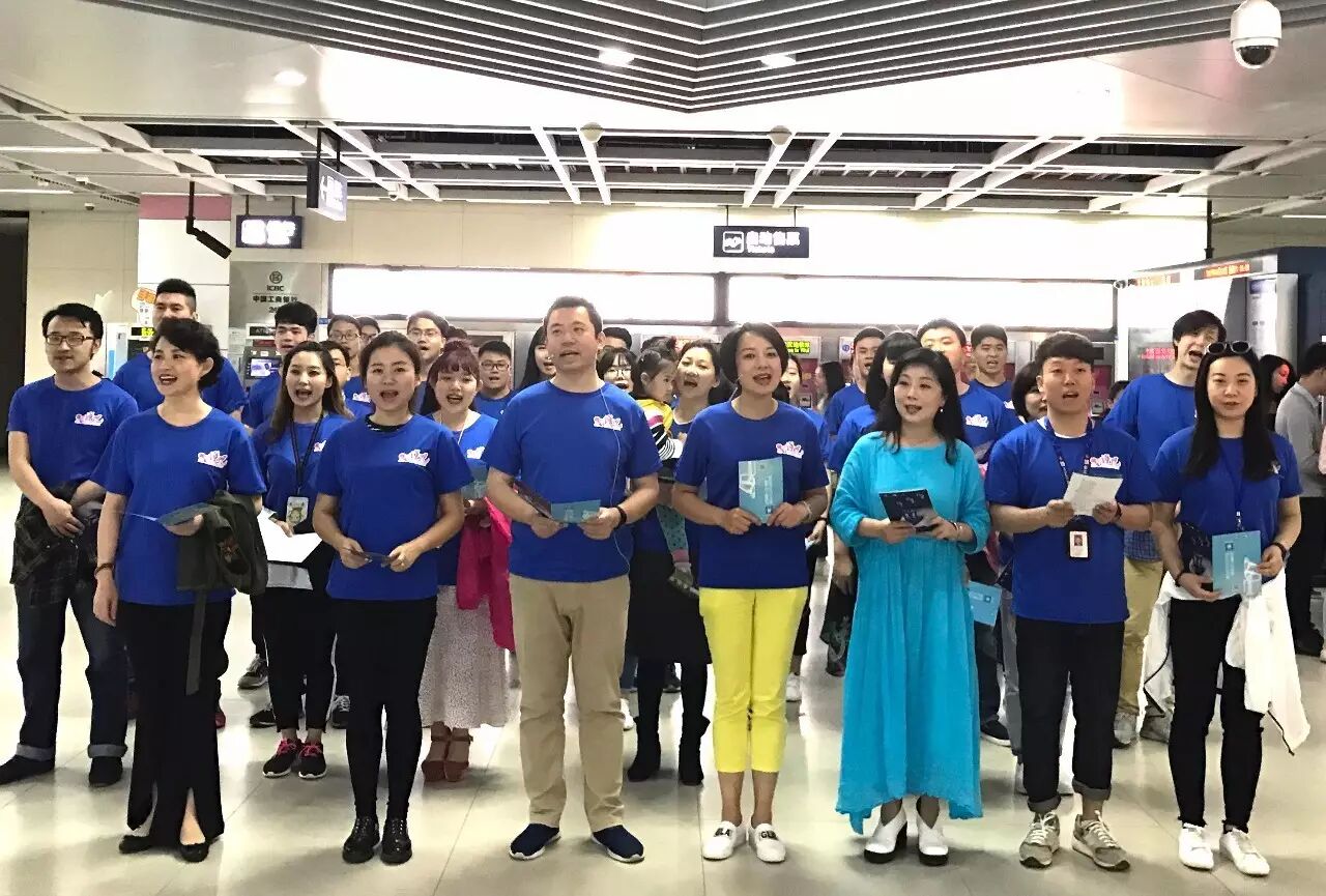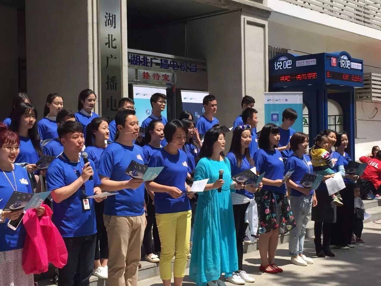 上午十一点,一场活泼生动的快闪活动在中山公园地铁站E出口掀起。在湖北之声、湖北经广主持人的领诵下,近百名市民身着个性服饰,高声诵读了《蒹葭》等八篇经典诗,井然有序的队伍一直走到湖北广播电台楼下。