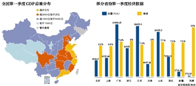 今年一季度,有江苏、山东、广东和浙江经济总量超过万亿,其中浙江今年首次加入“万亿俱乐部”。可以预见的是,一季度GDP总量已达到9392亿元、且增速维持在8%左右的河南省,将成为新的“万亿”省份。而广东目前一季度经济总量已达19438亿,很快将成为中国首个季度数据突破2万亿的省。海南今年一季度首次突破1000亿。