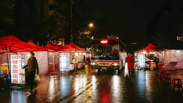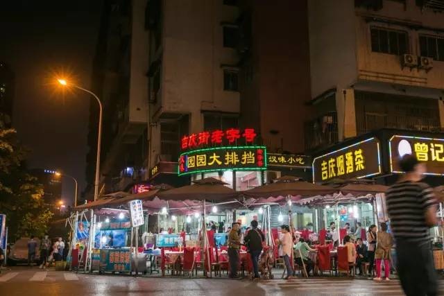 交易街远不如边上的吉庆街有名气,但自从吉庆街改造以来,那些好吃的馆子都转移到交易街上了,开了十几年的圆圆,新晋烧烤网红嚣夜,还有一直坚持下来的阿财小馆。交易街逐渐就变成了池莉笔下那条活在夜晚的吉庆街。