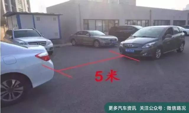 ① 当发现后车发动机盖以下完全被遮蔽,此时后车距离大概为5米。