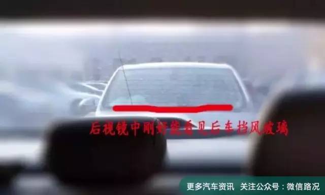 ② 如果发现后视镜中刚好能看见挡风玻璃,此时与后车的距离大概为0.5米。这时候你就可以熄火停车了。