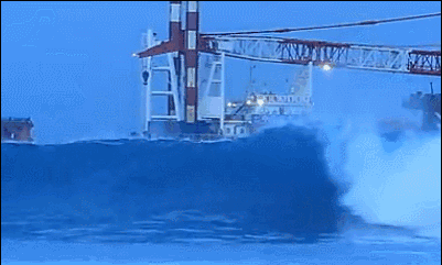 无助!万余吨的起重浮吊在大海中犹如一叶扁舟,汹涌的海浪能把吊钩甩出二三十米,一个简单的下放过程经常需要几十次尝试。