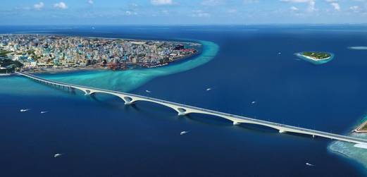马尔代夫上千个岛屿中,住人的有200个,其中又以马累岛、机场岛和胡鲁马累岛为主要居住岛。此前,机场岛到胡鲁马累岛有一条公路相连,但马累岛到机场岛需要摆渡。马累岛面积不足1.8平方公里,道路窄到连货车卸货都很困难。因此,如果能修通马累岛连接机场岛的大桥,三个岛连成一片,马尔代夫国家发展空间立即会发生质的飞跃。