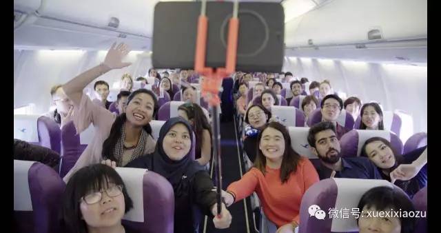 (兴奋的各国青年代表在飞机上合影)