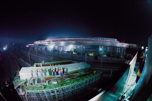 14日,汉十高铁六里坪跨襄渝铁路特大桥的转体连续梁主梁施工完成。由中铁十一局承建的该特大桥是汉十高铁控制性工程之一,线路复杂,分别穿越襄渝铁路和316国道。连续梁主梁施工完成后,即将完成转体施工,预计5月底正式合龙。
