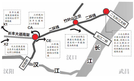 2015年4月底,历时10年建设的武汉市二环线正式“画圆”。作为一条全长48公里的快速路环线,二环线全程共规划有各类上下匝道100余条。但由于各种因素作用,虽然主线工程早已完工,但沿线仍有少部分匝道并未开通,致使部分地区的环线功能无法完全发挥,造成“老堵点不消,新堵点又来”的尴尬。