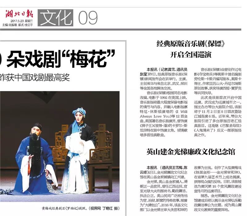 《湖北日报》5月23日报道《英山建金光悌廉政文化纪念馆》