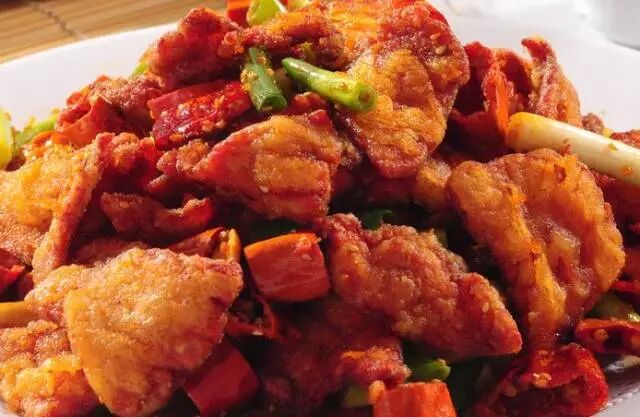 ▲颜色金黄皮烂酥的崇阳香酥鸡,肉香醇味美,食而不腻,是崇阳新创的风味名菜之一。