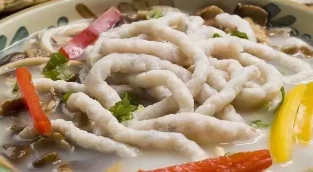 ▲云吞鱼面,这碗被称为长寿面。用面粉及几种不同鱼肉为主料制作而成,不仅味道好,而且还很有营养。