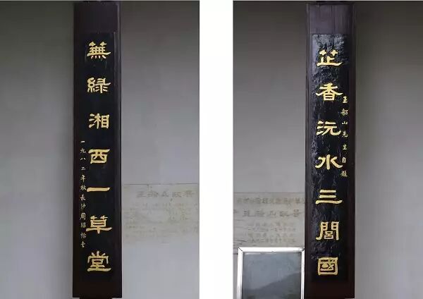 衡阳县籍名人陈墨西题。这副楹联是王船山诞辰290周年(公元1909年),陈墨西为了纪念船山先生所题写。大意指王船山虽已逝世数百年,但一身正气永留山水间,他留下的著书和绿竹,都能见证其忠肝义胆。
