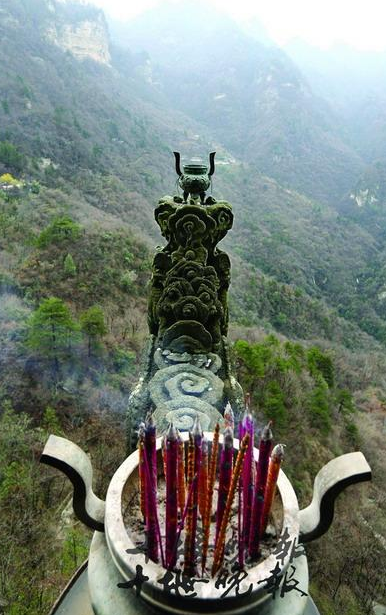 从龙首石上朝下望,一般人都会头晕目眩。过去,有些香客为了表达虔诚,冒着生命危险去烧龙头香,坠岩殉命者不计其数。