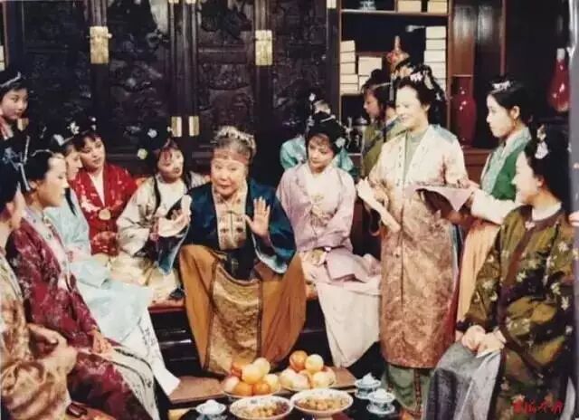 下联言堂中人所穿的官服,其色彩如云烟似彩霞,可见贾府的豪华显贵确实到了顶点。