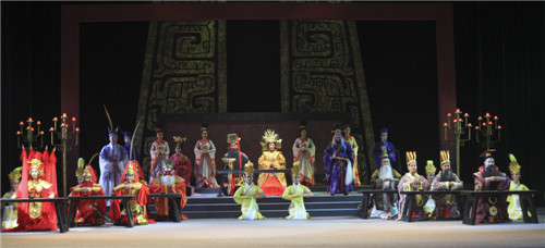 《优孟衣冠》通过两小时的演绎,以优孟与楚庄王的故事为蓝本,再现了一段风云变幻的楚史,展现出了楚文化的艺术和魅力。优孟是荆州人,生活在春秋战国时期的楚国,被誉为古代戏曲鼻祖,在楚文化艺术发展史上具有重要地位。