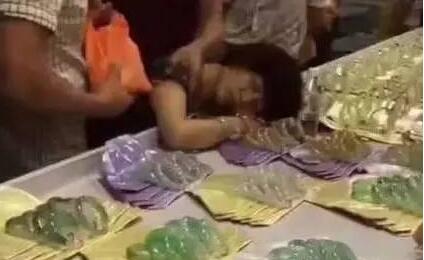 -6月27日上午,云南省德宏州瑞丽市姐告玉城内,游客费建勤失手打碎了商家林某一个喊价30万的手镯后晕倒。
