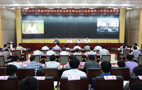 召开全省运用大数据对精准扶贫政策落实情况监督检查工作动员部署会。明确各级党委、政府履行主体责任,负责监督检查工作的组织实施;各级纪委履行监督责任,强化监督执纪问责;有关职能部门履行监管责任,各负其责。